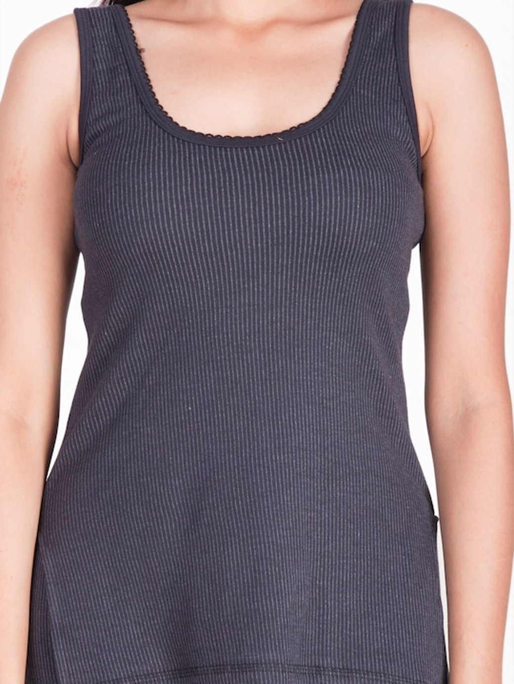 Black knitted thermal top, scoop neck, sleeveless