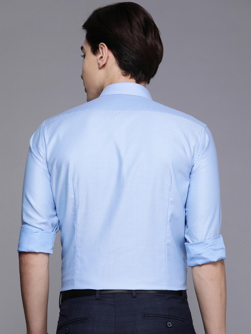 Men Blue Micro Ditsy Printed Slim Fit Pure Cotton Formal Shirt