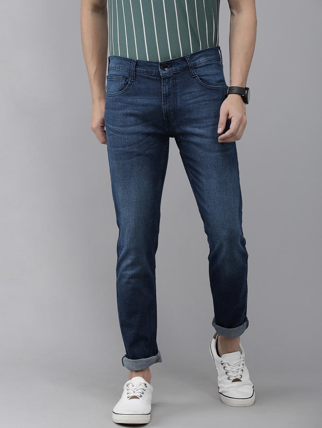 • Medium shade, light fade blue jeans